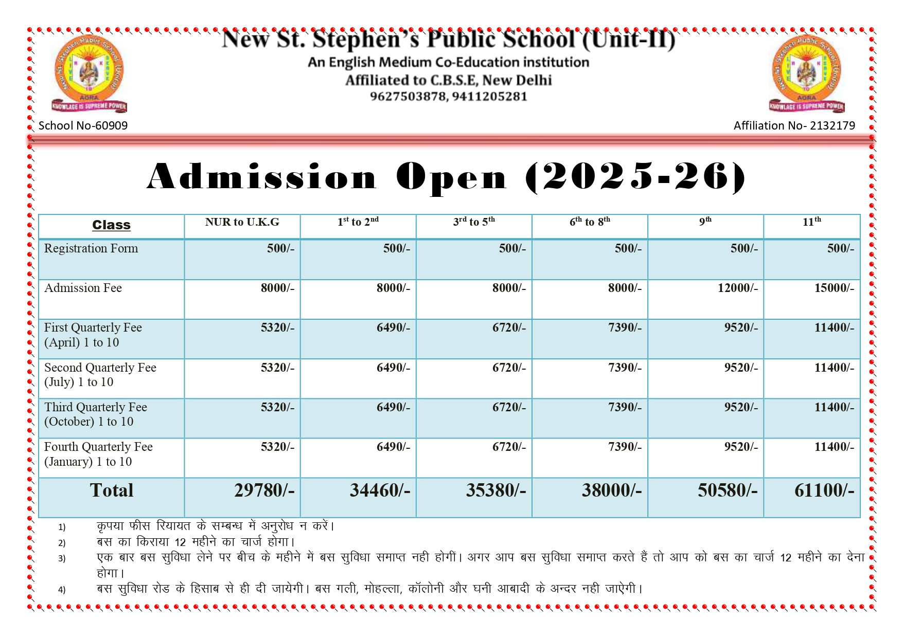 FEE STRUCTURE OF (2025 - 2026)